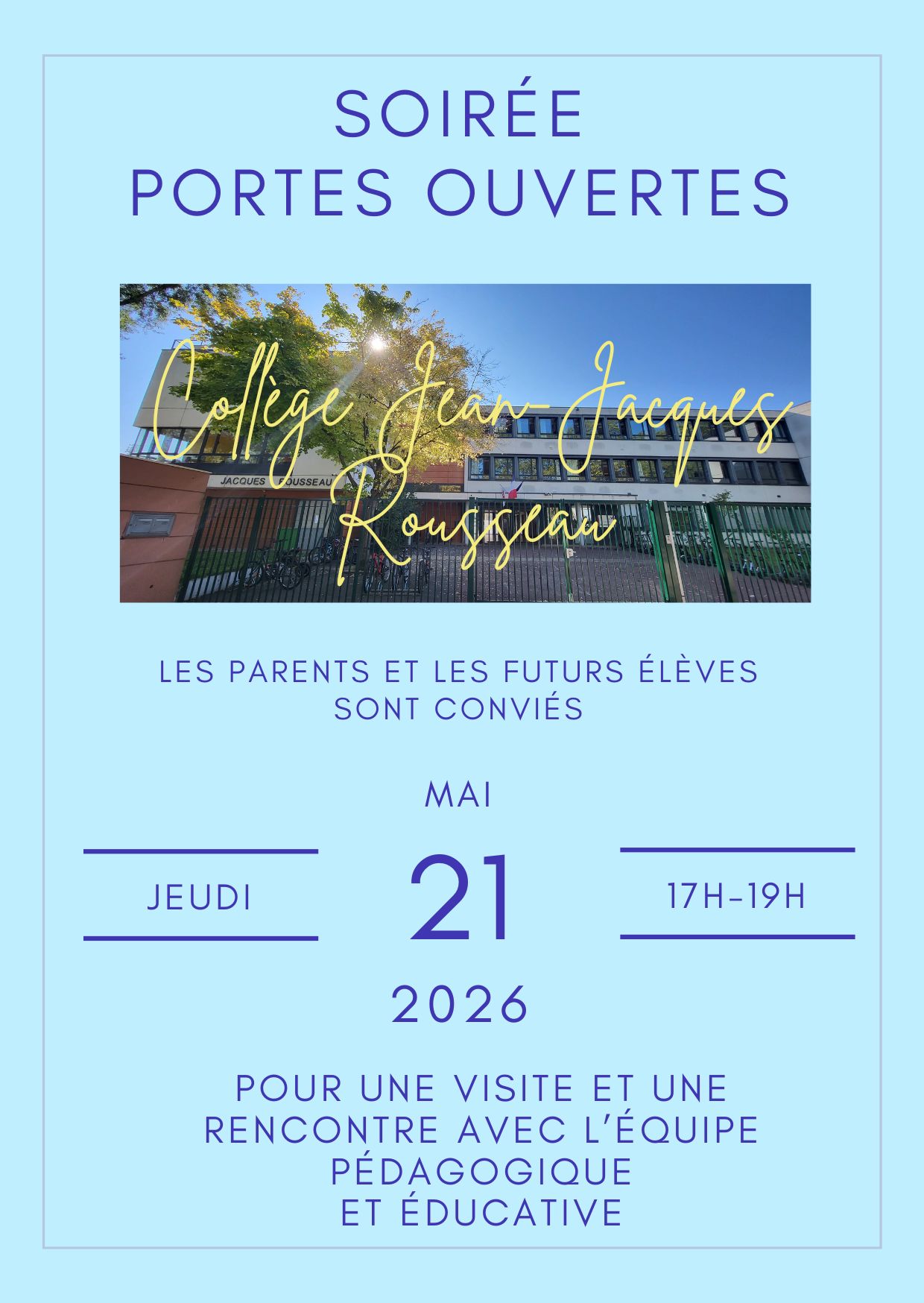 Le 21 mai 2026, soirée portes ouvertes pour les familles des futurs 6EME, à partir de 17h